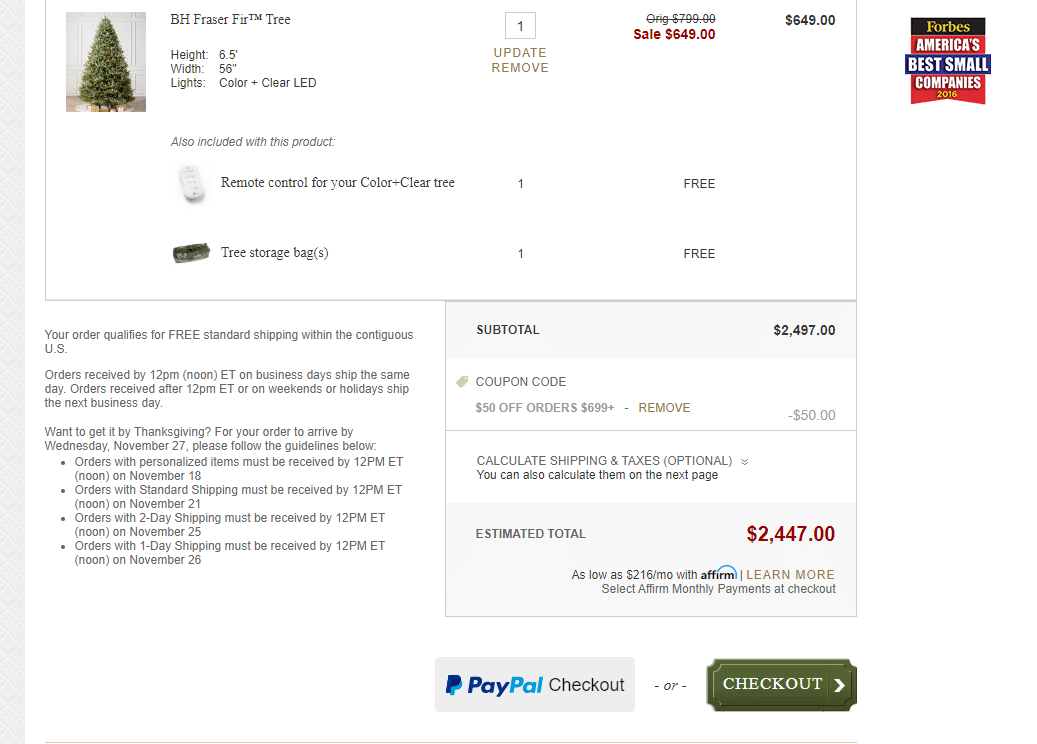 You can enjoy $50 OFF when your purchases over $699 at Balsamhill with this Coupon Code.