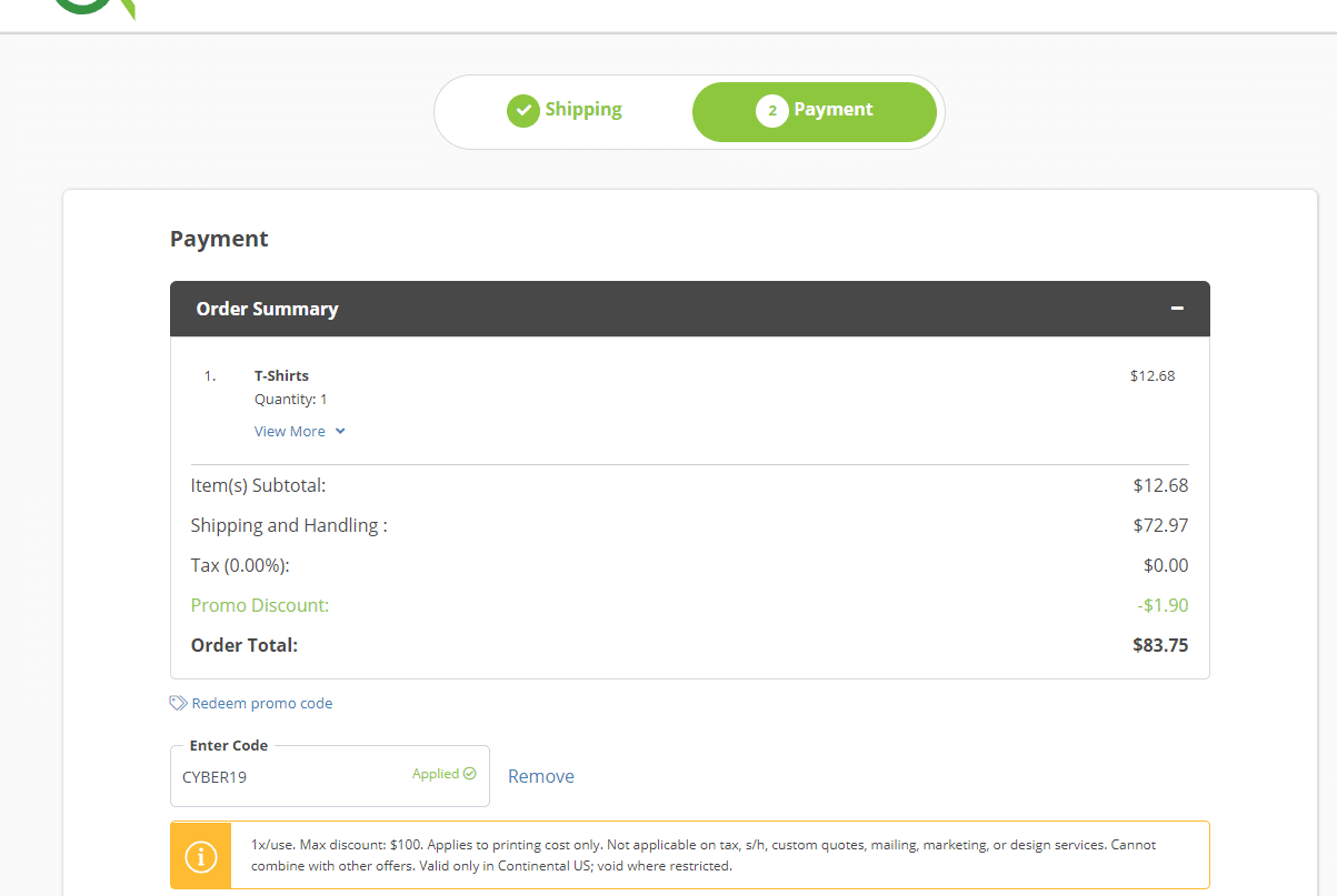 Save 15% on GotPrint with this discount code when you check out. Max discount: $100. Discount applies to printing cost of t-shirts only. Not applicable on tax, s/h, or for custom quotes, mailing, marketing, or design services. Cannot be combined with other offers. Valid only in Continental US; void where restricted/prohibited.